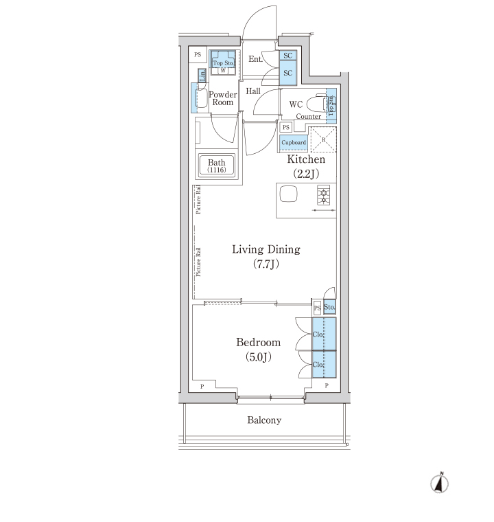 - 専有面積:43.52㎡/2LDK
