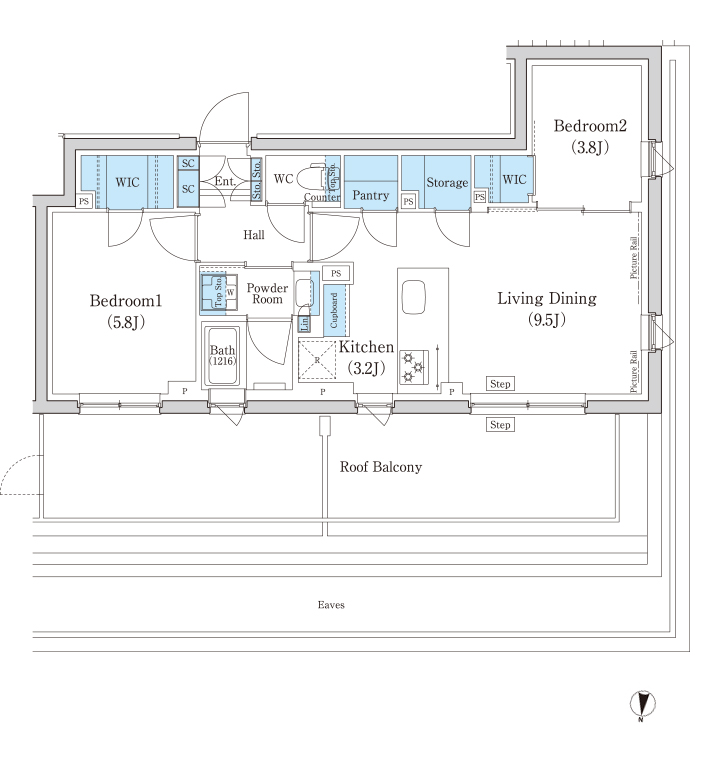 - 専有面積:43.46㎡/2LDK