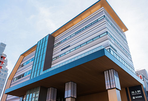 「Well」とコンセプトのもと、デザインにおける大きな特徴は、「木」のぬくもりを感じること。私たち東急は、住まいづくりを通してまちづくりを行っています。本物件の外観に関しても、街との親和性を考えてデザインに反映しています。そこには、歴史ある木造建築である池上本門寺、そして池上駅の存在があります。池上駅は2020年に新駅舎が開業しましたが、その際に旧池上駅舎で使われていた古材“えきもく”を再活用し、住民のみなさまの記憶を継承しました。私たちのマンションも、街に溶けこみながら愛される存在になりたいと考えました。