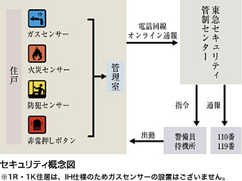 共用部や専有部で火災や侵入異常などが発生し、各種センサーが作動した場合には、必要に応じて東急セキュリティが現場に急行します。沿線を知り尽くした地域密着型のサービスにより、スピーディな対応が可能です。