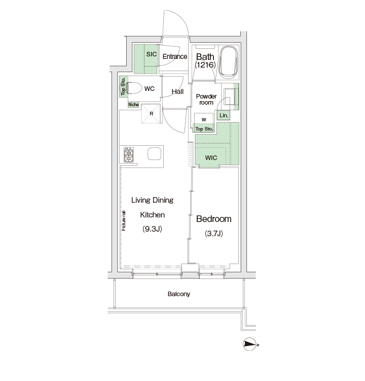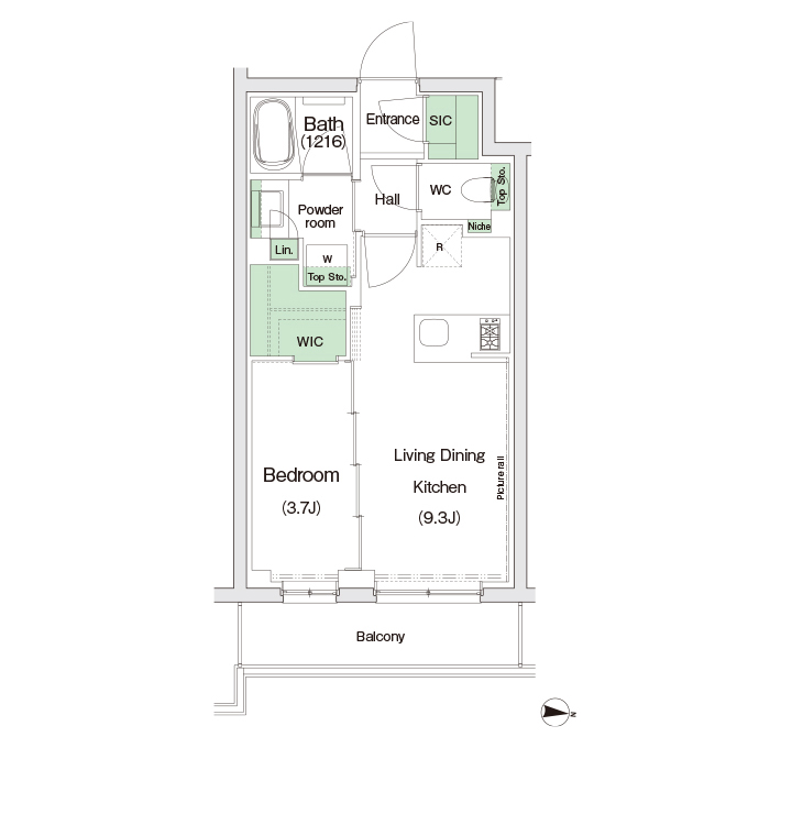 - 専有面積:37.06㎡/1LDK