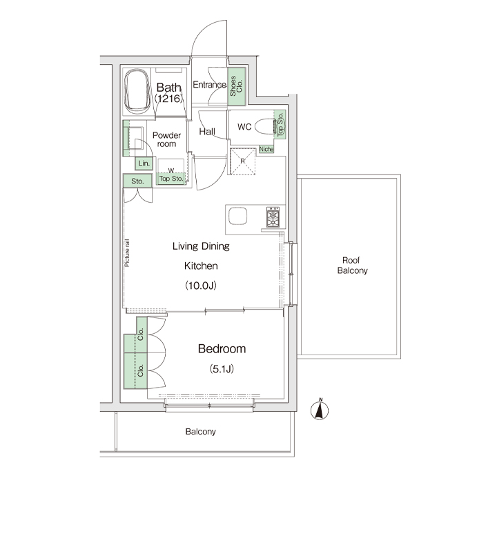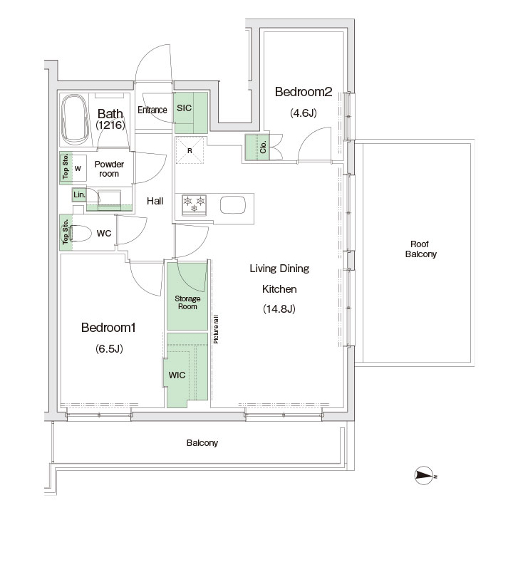 1R~2LDK +Storage Room +Roof Balcony