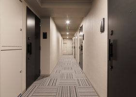 - セキュリティとプライバシーに加え、遮音効果も高めます。床は、落ち着いたカーペット敷き。雨の日も安心です。