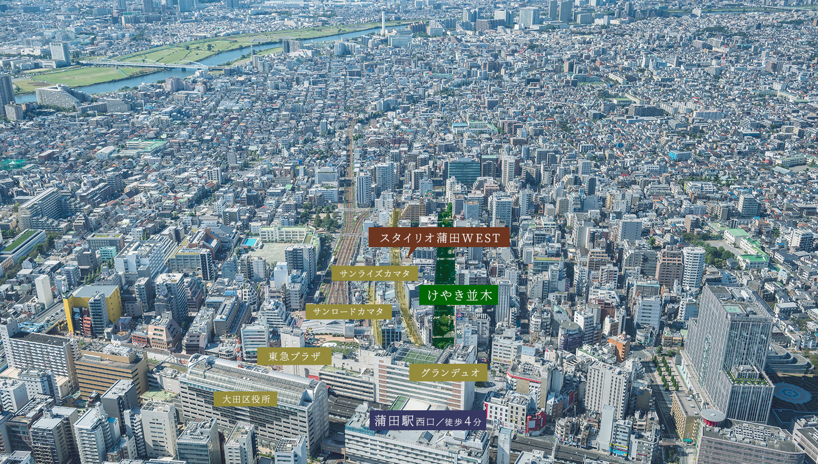 現地・蒲田駅周辺空撮(2021.10撮影)