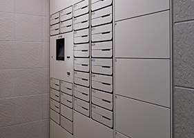 - 不在時に届いた荷物の受け取りができ、24時間いつでも取り出せる宅配ボックスを備えています。荷物が届くと、自室のインターホンやオートドア解錠時に着荷表示されます。