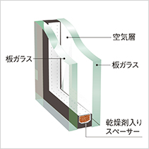 箱と箱の間のガラスが空間のアクセントに。