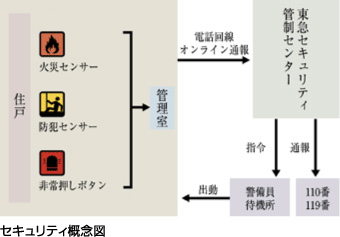 共用部や専有部で火災や侵入異常などが発生し、各種センサーが作動した場合には、必要に応じて東急セキュリティが現場に急行します。沿線を知り尽くした地域密着型のサービスにより、スピーディな対応が可能です。