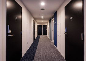 - エントランス、共用フロア、各居室のトリプルセキュリティを構築。1枚のカードで個々のアクセス権を管理し、安心かつスマートです。