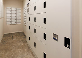 - 不在時に届いた荷物の受け取りができ、24時間いつでも取り出せる宅配ボックスを備えています。また、宅配ボックスがいっぱいの時は、管理人による代理受取りも可能です。