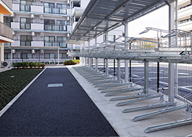 - 2段ラック式と平置き式の駐輪場をご用意致しました。駐輪可能サイズ、駐輪可能台数に限りがありますので詳細は、運営管理会社までお問い合わせください。※初回登録料:有料