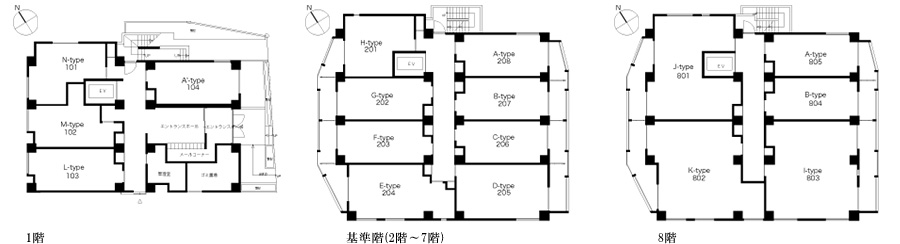 | 8F | 801 J type 1LDK 53.52㎡ |