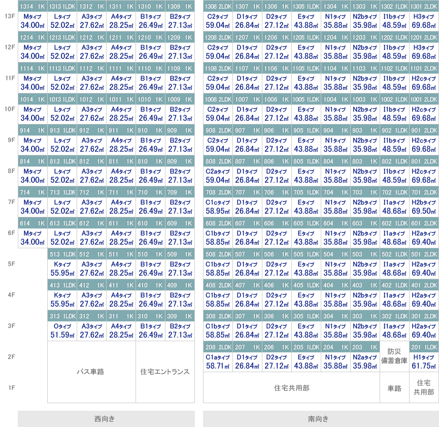※下記住戸はSOLAMO(太陽熱利用ガス温水システム)を導入しています。 901・1001・1101・1201・1301・908・1008・1108・1208・1308